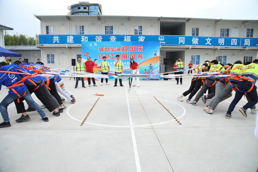 共有来自青浦区的4家红色工地的48名工友参加。现场设置了跳跃生命线、安全防护接力、同舟共济、安全拉力、障碍篮球、钢筋投壶、魅力套圈、掼蛋等8项比赛项目。活动期间,参与人员共聚一堂、同享一碗“国庆面”,齐唱爱国歌曲,为祖国母亲庆生。